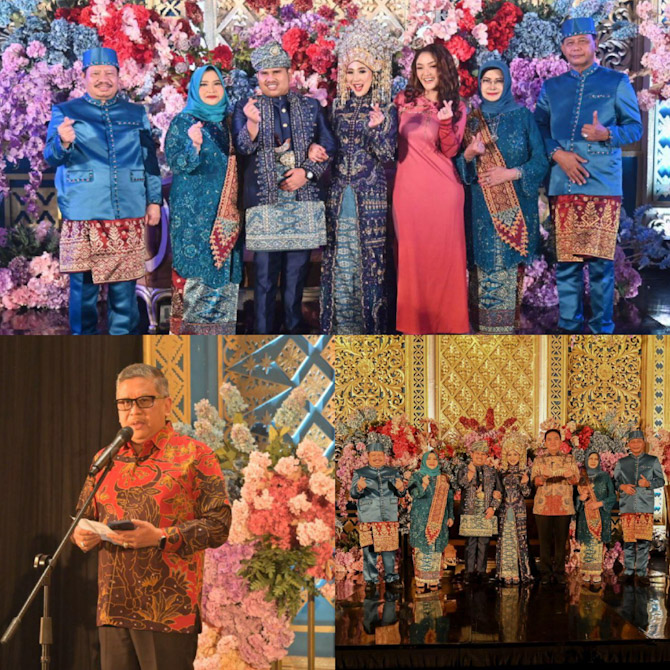 Kemudian, Sekjend PDI Perjuangan yang hadir di Resepsi Pernikahan Arsya & Tiara, juga turut memberikan sambutan serta ucapan selamat berbahagia kepada kedua mempelai.