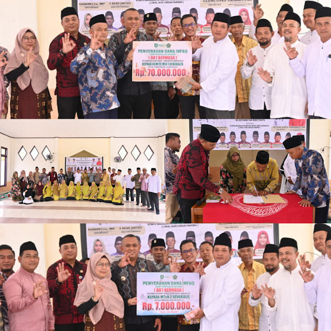 Mushalla Madrasah Tsanawiyah Negeri (MTsN) 3 Bengkalis, di Kecamatan Bukit Batu, sebesar Rp 7 juta. Sehingga total kedua bantuan ini sebanyak Rp 77 juta.
