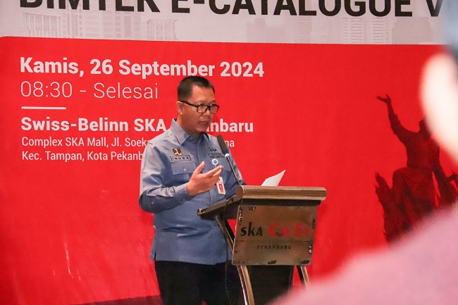 Beritatime.com, PEKANBARU - Pj Walikota Pekanbaru Risnandar Mahiwa S.STP M.Si, diwakili Sekretaris Daerah (Sekda) Indra Pomi Nasution ST M.Si membuka kegiatan Sosialisasi Bimtek E-Catalogue V6.0 di Ballroom Swiss Belin SKA Co-EX, Kamis (26/9/2024) pagi.