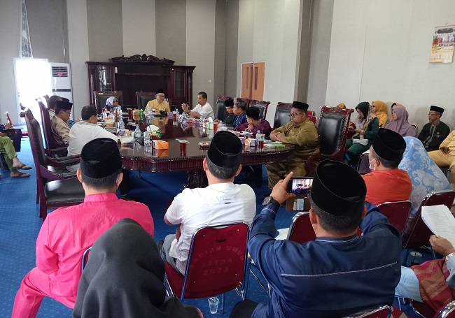 Rapat yang dihadiri Forkopimda diwakili, Kadis Pariwisata Rahmatul Zamri, Kadis Perikanan M. Amin, Kadis P2KBP3A, Kadis Kominfo yang diwakili Kabid IKP Juni Rahmat dan beberapa perwakilan OPD lainnya serta Ketua MUI Rohil H. Suhaimi, Kang Kerra, Kabag protokol dan lainnya.(Rilis/Btc)