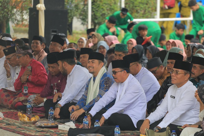 Foto : Pj Wali Kota Pekanbaru, Risnandar Mahiwa menghadiri acara peringatan Maulid Nabi Muhammad SAW di lapangan Kantor Kementerian Agama (Kemenag) Pekanbaru