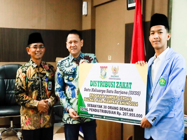 Didampingi langsung Ketua Badan Amil Zakat Nasional (Baznas) Kabupaten Kampar Purwadi, SP, M.Si, Pj Bupati Kampar saat itu mendistribusikan dan Pendayagunaan Zakat tahun 2024 sebanyak 30 orang.