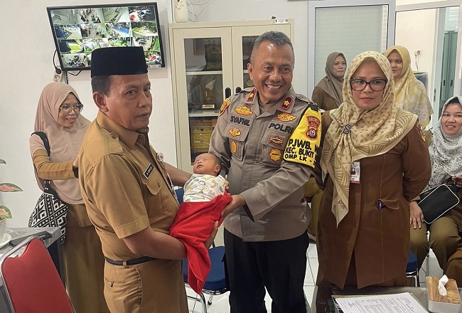 Penyerahan bayi malang yang diduga sengaja dibuang oleh orang tua kandungnya tersebut dilaksanakan di Puskesmas Simpang Tiga, Selasa (22/10/2024).