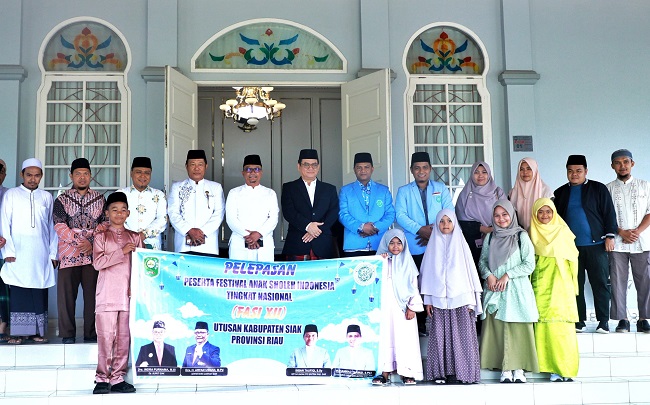 Beritatime.com, Siak - Pjs Bupati Siak Indra Purnama melepas peserta kontingan Festival Anak Sholeh Indonesa (FASI) Kabupaten Siak tahun 2024, di Halaman Kediaman Bupati Siak Komplek Abdi Praja, Kamis (24/10/2024) Pagi.