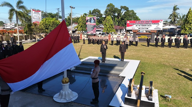 Peserta upacara terdiri dari Pejabat Utama Polres Kampar, Para Perwira, Bintara dan ASN Polres Kampar.