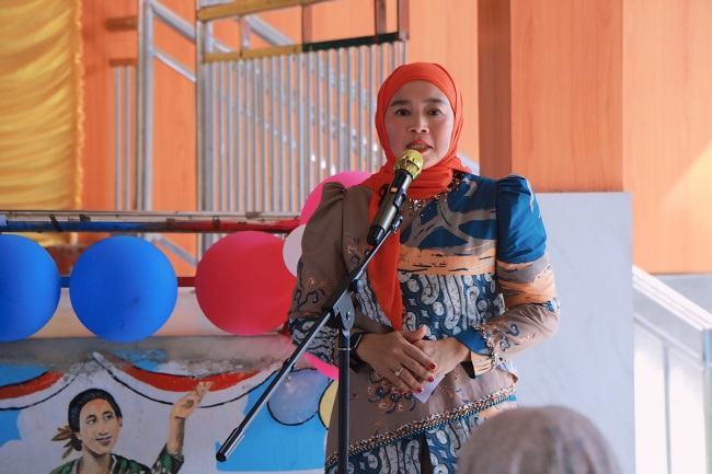 Foto : Ketua Dharma Wanita Persatuan (DWP) Kota Pekanbaru Haswinda Indra Pomi membuka acara peringatan Hari Sumpah Pemuda dan Penguatan Program Profil Pelajar Pancasila (P5) di Taman Kanak-Kanak Pertiwi, Kecamatan Limapuluh.
