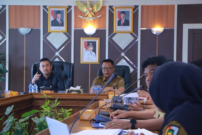 Risnandar rapat bersama sejumlah pejabat di lingkungan Pemko Pekanbaru, untuk persiapan kunker DPR RI bidang pendidikan tentang kekerasan dan perundungan di satuan pendidikan Kota Pekanbaru.