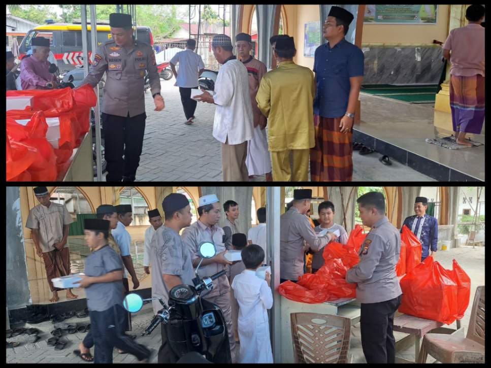 Pelalawan, Beritatime.com,- Jalin silaturahmi bersama masyarakat kota pangkalan kerinci ,Polres Pelalawan gelar Jumat Berkah dengan membagikan Ratusan paket nasi kotak kepada jamaah masjid as- Sallam jalan Seminai GG mawar Kelurahan Pangkalan Kerinci Kota, Jumat (13/12/2024).