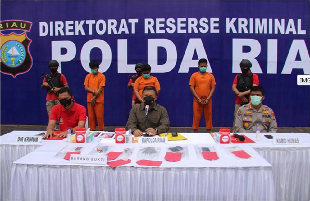 Penangkapan para pelaku pada 23 September 2020 di dua lokasi yang berbeda yakni di Perawang dan Pekanbaru. Belum semua pelaku yang berhasil ditangkap kepolisian.