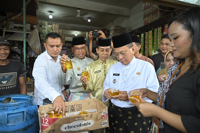 Rohil - Beritatime.com-Bupati Rokan Hilir, H. Bistamam bersama Forum komunikasi pimpinan daerah (Forkopimda) melakukan Inspeksi mendadak (Sidak) ke pasar Datuk Rubiah Bagansiapiapi untuk memantau langsung harga dan persediaan bahan kebutuhan pokok selama bulan puasa Ramadhan, Jumat (7/3/2025) di Bagansiapiapi, Rohil Provinsi Riau. Sidak harga bahan sembako di pasar Datuk Rubiah Bagansiapiapi, Bupati Rohil H.Bistamam juga di peredami Kapolres Rohil AKBP Isa Imam Syahroni, Dandim 0321 Rokan Hilir Letkol Kav Nugraha Yuda Prawiranegara, Kepala BPS, Kasi Datun Kajari Rohil, Sekda Fauzi Efrizal, Asisten II Muhammad Nur Hidayat, Kadis Prindagsar Rohil Mursal, Kadistanak, Aldi dan Kepala Inspektorat Roy Azlan serta beberapa Kabag di Lingkungan Pemkab Rohil H. Bistamam mengatakan saat ini harga kebutuhan pokok di pasar Datuk Rubiah masih stabil tidak banyak mengalami pemutaran harga. Dan untuk persediaan bahan pokok selama bulan Ramadhan hingga Idul Fitri masih cukup dan tidak terjadi kelangkaan. “Alhamdulillah pagi tadi, kami melakukan sidak ke pasar Datuk Rubiah bersama Forkopimda. Hasil pemantauan kami terhadap bahan kebutuhan pokok di pasar Datuk Rubiah Bagansiapiapi, stok masih cukup tersedia dan harganya cukup stabil tidak mengalami gangguan,” kata H. Bistamam. Selain mempertemukan terkait ketersediaan sembako dan harga , Bupati juga mengatakan bahwa daya beli masyarakat juga mengalami peningkatan selama bulan suci Ramadhan, di bandingkan bulan - bulan sebelumnya. Hal tersebut disampaikannya berdasarkan apa yang disampaikan para pedagang saat berbincang-bincang dengan para pedagang pasar Datuk Rubiah. Ditambahkan Sekdakab Rohil Fauzi Efrizal, ada beberapa item bahan pokok yang sedikit mengalami kenaikan seperti minyak goreng curah, minyak kita yang karena tingginya permintaan pasar. Sehingga dari pihak agen membatasi kuota di setiap daerahnya. " Alhamdulillah harga sembako selama Ramadhan ini masih stabil begitu juga ketersediaan sembako kita masih cukup. Namun ada sedikit kenaikan harga minyak goreng curah, namun tidakbterlalu tinggi. Hal ini disebabkan karena tingginya permintaan pasar sehingga dari pihak agen membatasi kuota di setiap daerah. Sedangkan untuk harga daging dan telur ayam masih stabil," kata Fauzi Efrizal. Selain itu, dikatakan Fauzi bahwa pertengahan bulan Ramadhan nanti, Pemkab Rohil melalui dinas terkait akan mengadakan pasar murah. Diharapkan dengan adanya pasar murah nantinya dapat membantu masyarakat dalam menghadapi hari raya Idul Fitri.