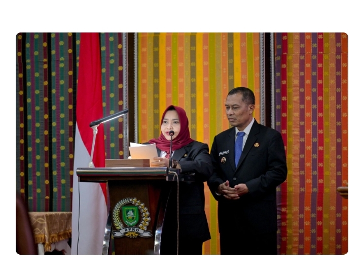 BENGKALIS-Beritatime.com- Bupati Bengkalis Kasmarni beserta Wakil Bupati Bengkalis H Bagus Santoso menyampaikan pidato sekaligus visi dan misi Bupati dan Wakil Bupati Bengkalis periode 2025-2030 pasca pelantikan, Senin, 10 Maret 2025 di Ruang Rapat DPRD Bengkalis.