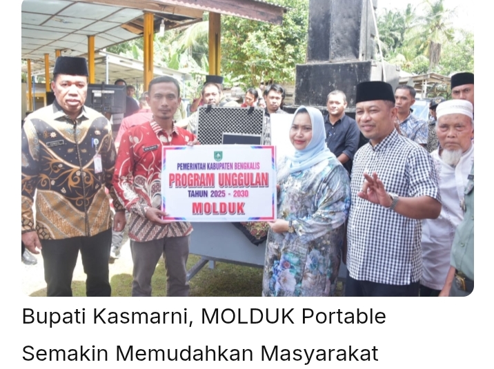 Terkait perangkat yang diserahkan Bupati tersebut, Kadisdukcapil Ismail menjelaskan Layanan MOLDUK Portable merupakan implementasi salah satu Program Unggulan Pemerintah Kabupaten Bengkalis Tahun 2025-2030, yakni Pelayanan Sistem Kependudukan Berbasis Mobile.