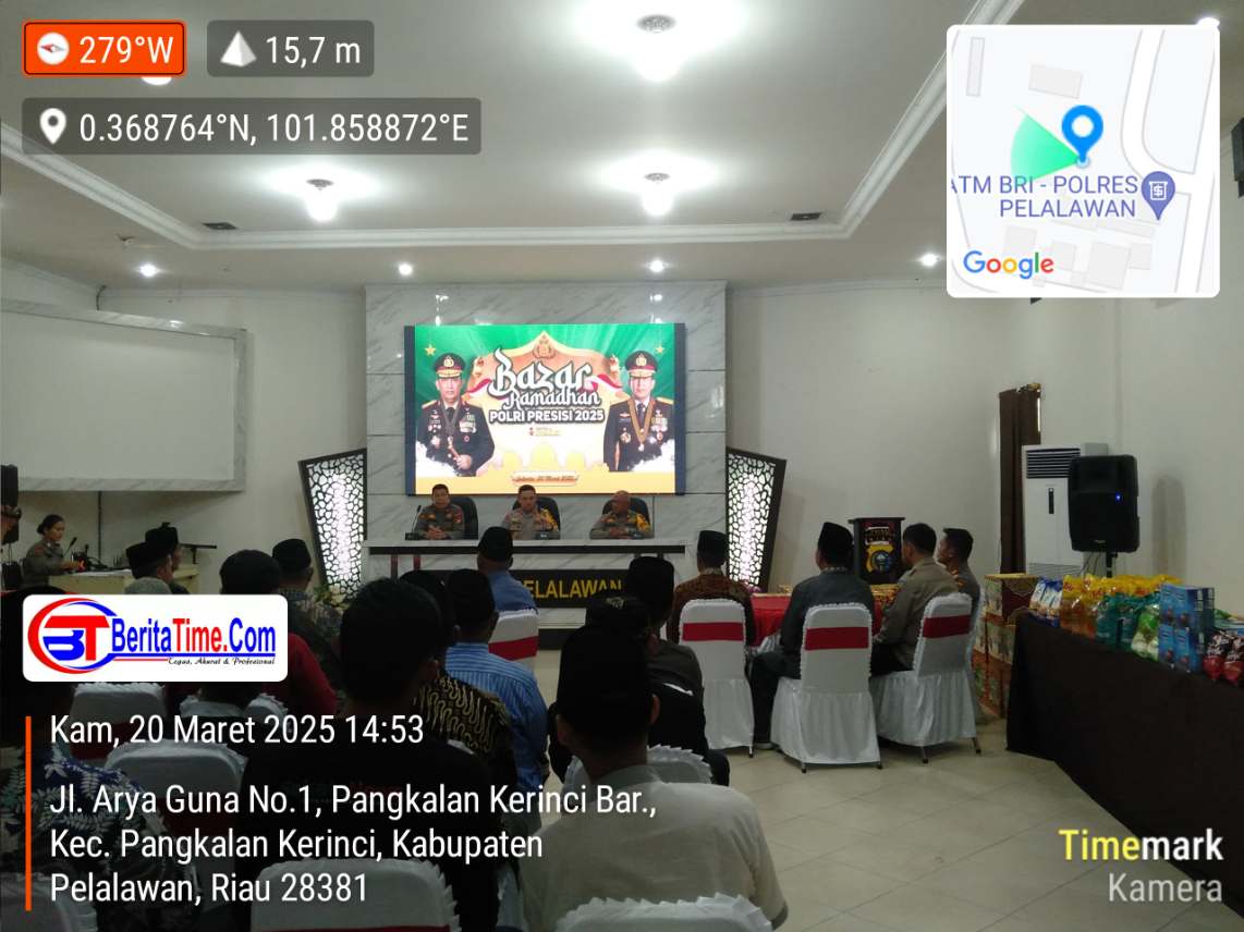 Pelalawan, beritatime.com,- Kapolres Pelalawan AKBP Afrizal Asri SIK, bersama seluruh Pejabat Utama Polres Pelalawan mengikuti rangkaian zoom kegiatan "Bazar Ramadhan Polri Presisi 2025".Kamis(20/3/2025) di Aula Teluk Meranti, kegiatan yang dilaksanakan jajaran Polri secara serentak diseluruh wilayah Indonesia .