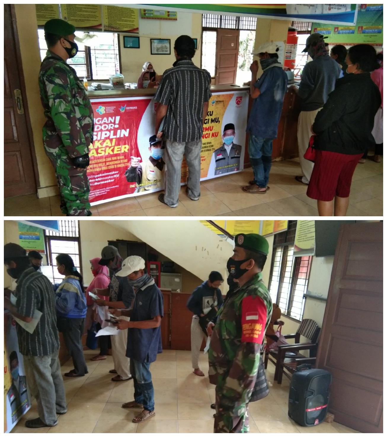 Sebagai upaya pencegahan terhadap penyebaran dan penularan Covid-19, antrian kegiatan pembagian BST ini diatur sesuai ketentuan protokoler kesehatan. Setiap warga diwajibkan memakai masker, mencuci tangan dan menjaga jarak fisik. Ujarnya.