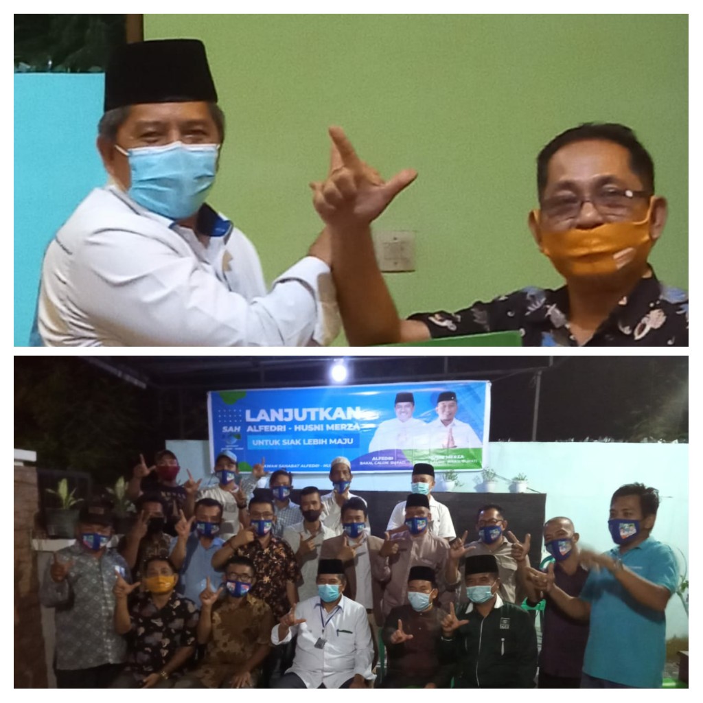 BERITATIME.COM, Siak - Dokter M Fajar Hanafi menerima kunjungan dari Calon Bupati Siak nomor urut dua Drs Alfedri MSi, di Tualang Regency Blok A No 1, Kampung Perawang Barat, Kecamatan Tualang, Kabupaten Siak, Sabtu (31/10/2020) sekira pukul 18.15 WIB.