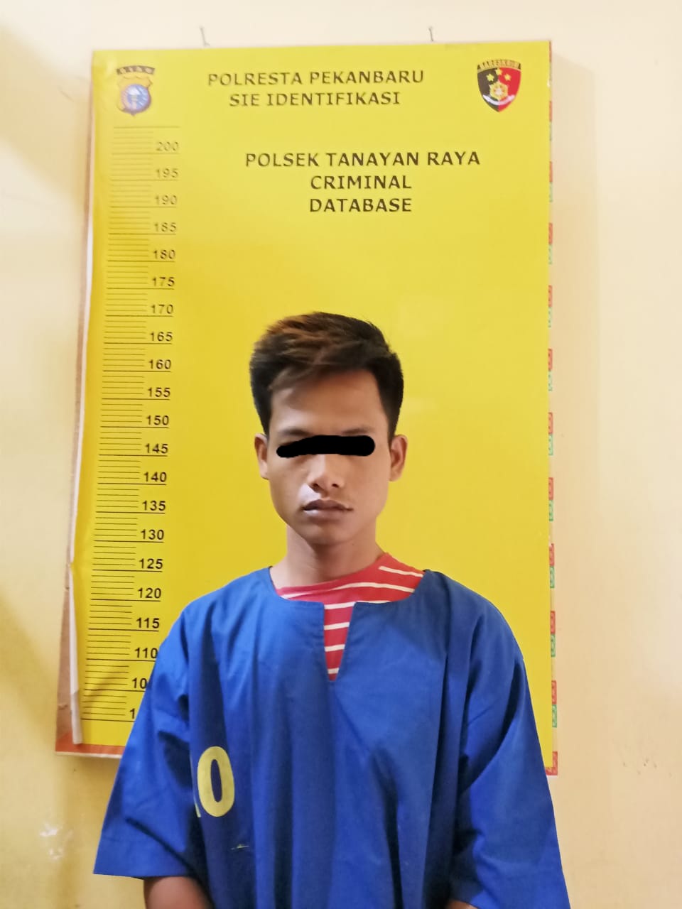 Tersangka inisial RG alias Rizal (23) warga jalan Manggaraya rumah petak pak Jalil deretan ke-4 Rt 02 Rw 11 kelurahan Mentangor Kecamatan Tenayan Raya Kota Pekanbaru.