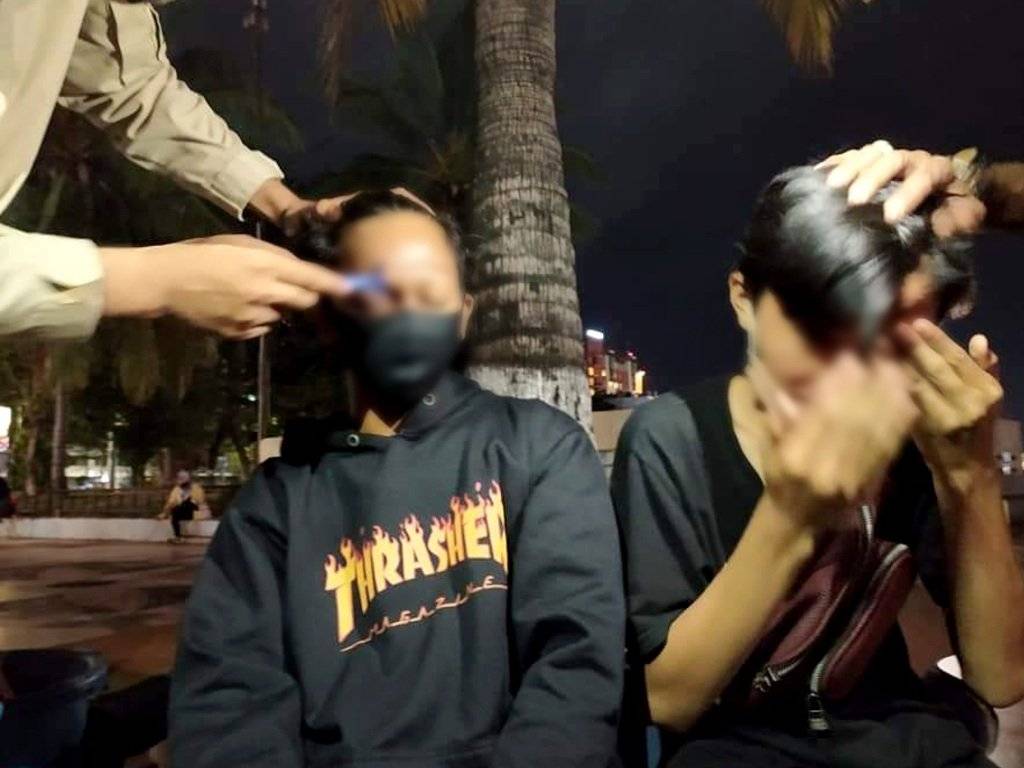 BERITATIME.COM, Makassar - Viral potongan rekaman video yang memperlihatkan dua pemuda dihukum dengan cukur alis di kawasan Anjungan Pantai Losari, Kota Makassar, Sulsel. Video ini pertama kali diunggah akun Facebook, Hariadi Pata Nonci NnZz, pada Minggu, 1 November 2020 kemarin.