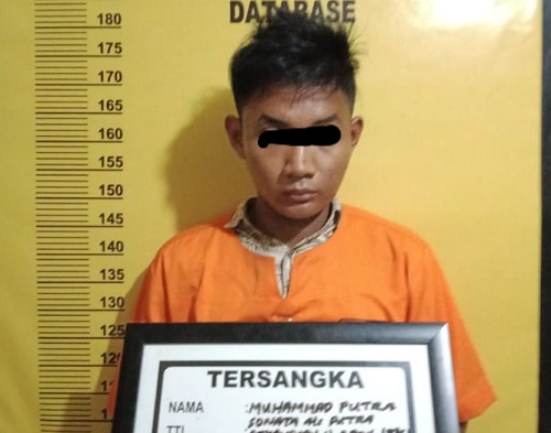 Tersangka inisial MPS alias Putra (26) beralamat dijalan Suka Karya Perumahan Graha Permai Panam Kelurahan Tuah Karya Kecamatan Tampan Kota Pekannaru Pekanbaru