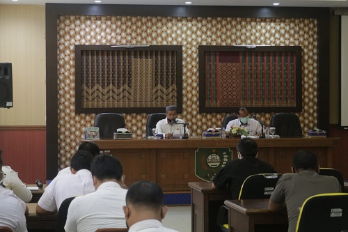 BERITATIME.COM, Siak - Asisten Admintrasi Umum Setda kabupaten Siak Jamaluddin pimpin rapat pembentukan Tim Desk Pemilihan Bupati dan Wakil Bupati Siak tahun 2020 di ruang rapat Siak Sri Indrapura, Kantor Bupati Siak, rabu, (4/11/2020).