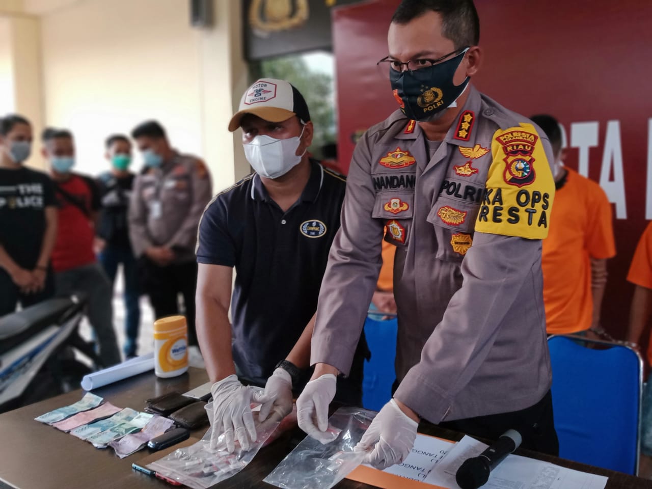 "Kemudian kita juga amankan empat unit timbangan digital, uang tunai Rp2.150.000, tiga unit handphone, dua buah dompet dan ratusan pcs plastik bening les merah kosong," papar Kapolresta.