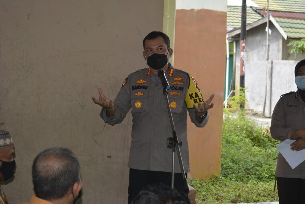 Kapolresta Pekanbaru Kombes Pol H. Nandang Mu’min Wijaya, S.I.K., M.H., dalam sambutannya, menyampaikan ucapan terima kasih kepada aparat Kecamatan Tampan, Kelurahan Sidomulyo Barat, Ketua RT/ RW 15, tokoh masyarakat, dan warga Perumahan Purna Griya Mas RW 15 Kelurahan Sidomulyo Barat, yang telah menyediakan tempat dan waktu dalam acara kegiatan FGD dengan mengangkat tema Sinergitas Tomas dan Tiga Pilar bersama masyarakat.