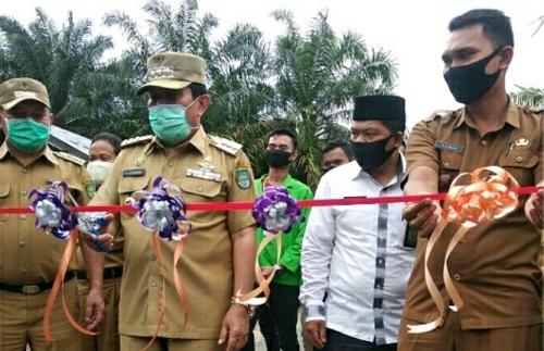 Peresmian jalan PKK ditandai dengan Penguntingan pita oleh Bupati Rohul H. Sukiman, didampingi Kadis PUPR Rohul Anton ST MM, Kadis Kominfo Rohul Drs Yusmar M.Si serta Kepala OPD lainnya, Camat Bangun Purba Admiral SP, Kades Bangun Purba Risman A.Md dan ratusan masyarakat.
