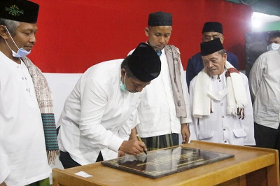 BERITATIME.COM, Siak - Bupati Siak Alfedri didampingi Pimpinan Ponpes Riyadus Sholihin KH.Thoyib Firdaus, Direktur Kredit Bank Riau Kepri Samsul Irawan, Asisten Ekbang Setda Kabupaten Siak Hendrisan, meresmikan bangunan 3 lokal Madrasah Aliyah Negeri Riyadus Sholihin, bertempat di Pendopo Utama Ponpes Riyadus Sholihin di Kampung Delima Jaya ,Kecamatan Kerinci Kanan, Kabupaten Siak, Selasa malam (14/7/2020)
