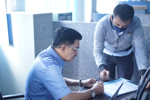 Untuk diketahui, Pengembalian kendaraan dinas itu ditandai dengan penandatangan berkas serah terima, disaksikan langsung oleh puluhan pegawai yang sedang 'ngantor'.