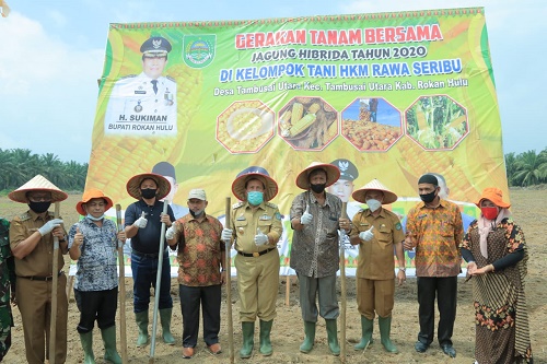 Sebagai bentuk dukungan Pemkab tersebut, pada Kamis (16/7/2020), Bupati Rohul H. Sukiman ikut Penanaman jagung hibrida perdana diitandai dengan Menugal dan menanam Jagung bersama Kelompok Tani HKM Rawa Seribu, di Desa Tambusai Utara, Kecamatan Tambusai Utara.