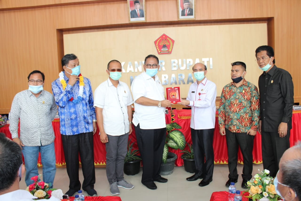 BERITATIME.COM,--NIAS BARAT-Pemerintah Kabupatèn Nias Barat sambut kunjungan Ketua Dewan Perwakilan Rakyat Daerah (DPRD) Provinsi Sumatera Utara, Drs. Baskami Ginting bersama Anggota DPRD dari Daerah Pimilihan P. Nias (Dapil-8) Sumatera Utara; Budieli Laia, S.Pd, Thomas Dachi,S.H., Pdt. Berkat Kurniawan Laoli, Edward Zega dan Tukari Talunohi; di Kantor Bupati Nias Barat; diterima oleh Sekda Prof. Dr. Fakhili Gulö (mewakili Bupati dan Wakil Bupati Nias Barat yang sedang berada di luar daerah), segenap Asisten, Staf Ahli dan Pimpinan OPD lingkup Pemkab. Nias Barat Rabu, 22 Juli 2020.