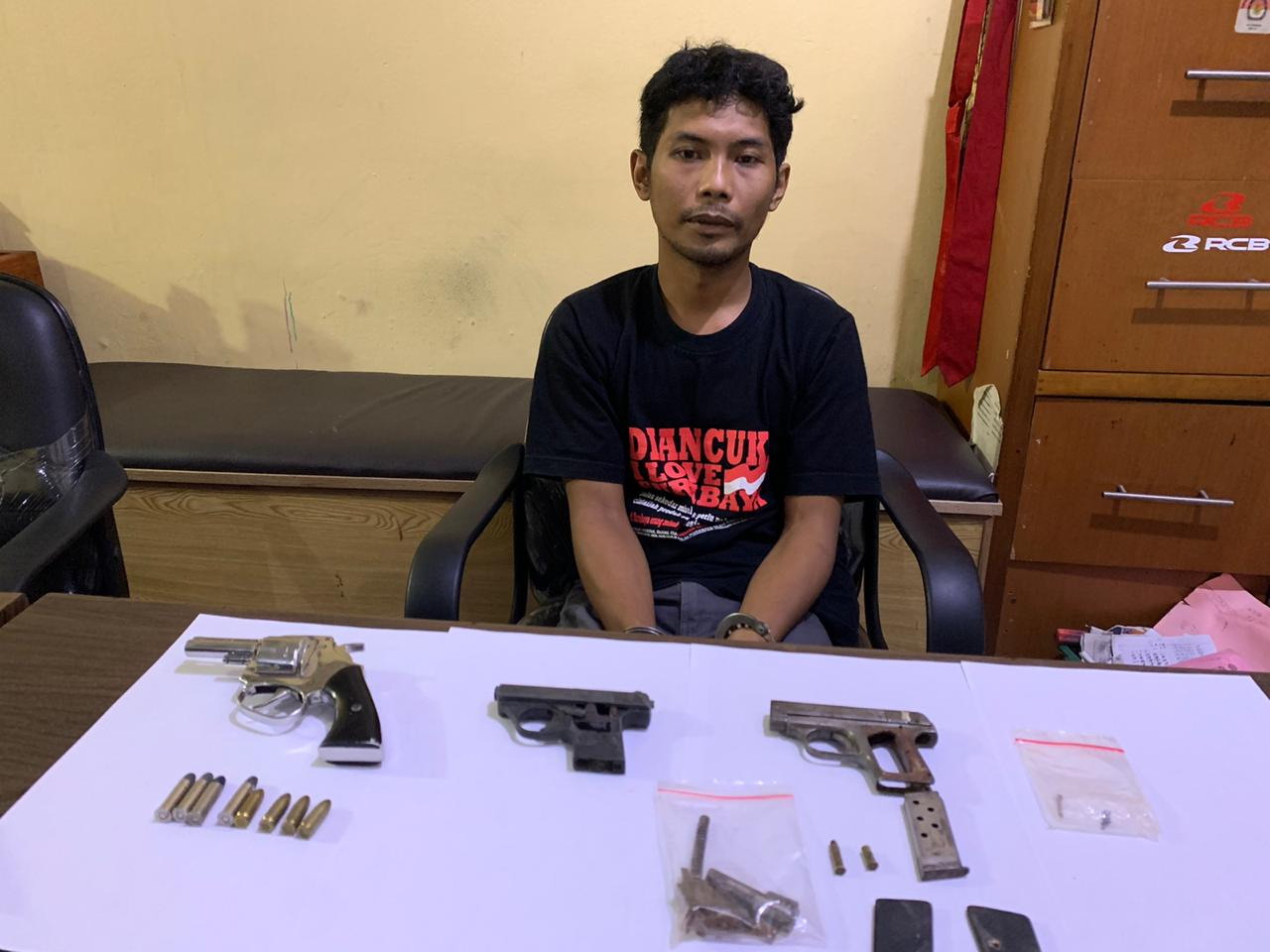 Penangkapan seorang pelaku pengguna dan penyimpan senjata api berinisial YA (31) yang beralamat di jalan hangtuah kecamatan tenayan raya kita pekanbaru.