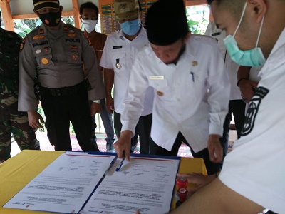 BERITATIME.COM, Pelalawan - Wakil Bupati Pelalawan Drs. H. Zardewan, MM bersama Ketua DPRD Kabupeten Pelalawan Adi Sukemi, ST.MM menghadiri penandatanganan MOU Program Kampung Iklim (PROKLIM) IJO bertempat di Desa Pematang Tinggi, Kecamatan Kerumutan pada Rabu (12/08/2020). Proklim IJO ini terbentuk atas kerja sama antara Pemerintah Desa Pematang Tinggi dengan Dinas Lingkungan Hidup dan Kehutanan ( DLHK ) Kabupaten Pelalawan dan PT. Pertamina Hulu Energi ( PHE ) Kampar. Untuk Proklim ini jenis tanaman yang ditanami adalah tanaman sayur-sayuran, tanaman obat-obatan herbal, serta tanaman pepohonan.