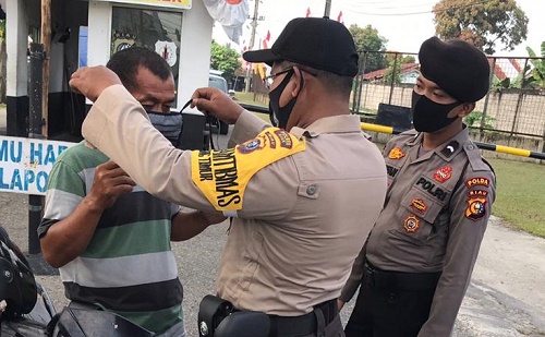 " mulai tadi malam personil dari Sat Brimob Polda Riau ditambah Personil dari Dit Shabara Polda Riau dan Dit Polair Polda Riau bergabung dengan personil dari Polres Siak dan Polsek Tualang serta unsur terkait seperti TNI dan Satpol PP sudah mulai melakukan penertiban protokol kesehatan kepada masayarakat di Kecamatan Tualang yang bertujuan untuk memutus penyebaran Covid - 19 disana." terang AKBP Doddy.